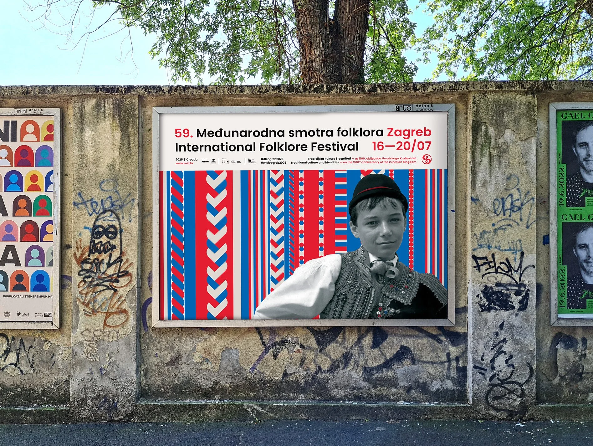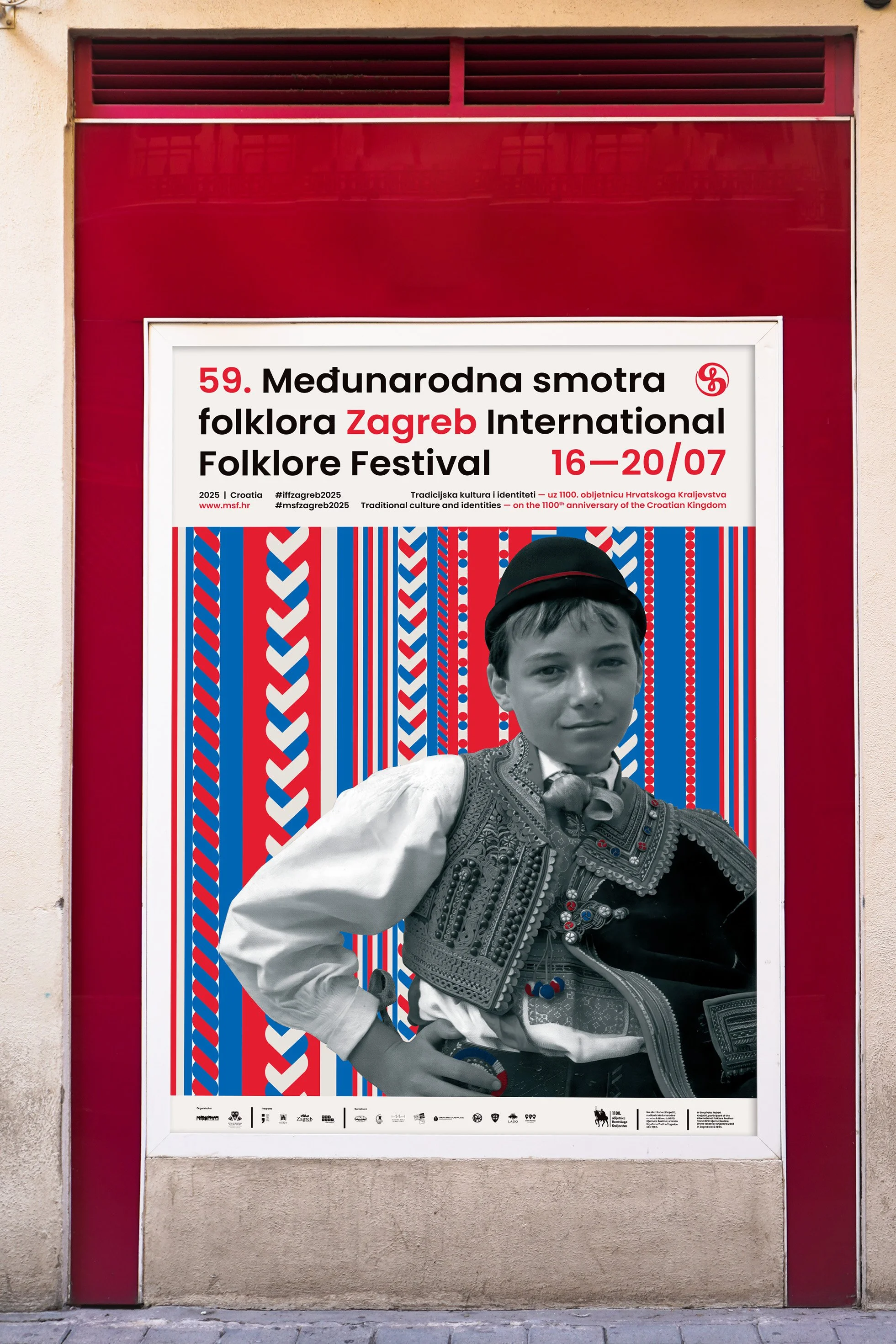 59. izdanje Međunarodne smotre folklora Zagreb posvećeno je tradicijskoj kulturi i identitetima, uz 1100. obljetnicu Hrvatskog kraljevstva. Ovaj puta inspirirana hrvatskim nacionalnim motivima, prije svega trobojnicom, grafika eksperimentira sa redefiniranjem vizualnih odrednica hrvatskog nacionalnog identiteta u suvremenom vizualnom jeziku. Portret korišten kao dio kolaža snimila je Snježana Zorić oko 1984. godine, a mladi princ u šestinskoj narodnoj nošnji činio nam se prikladnom reinkarnacijom drevnoga kralja Tomislava.