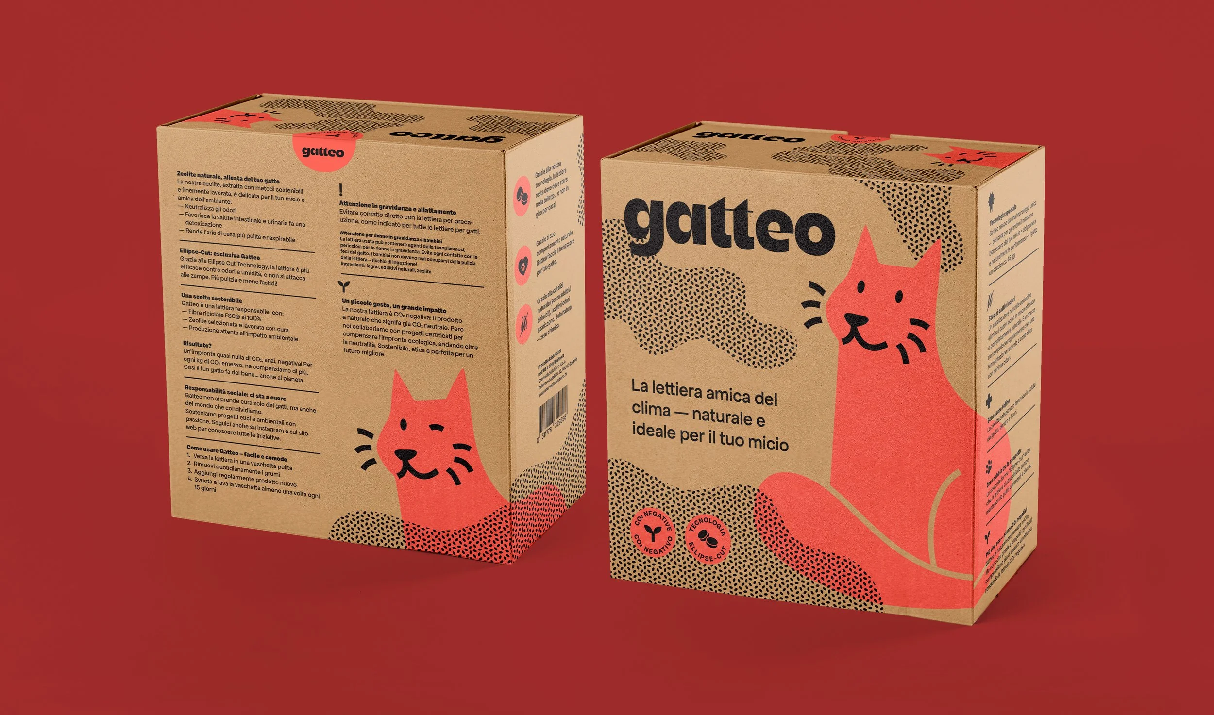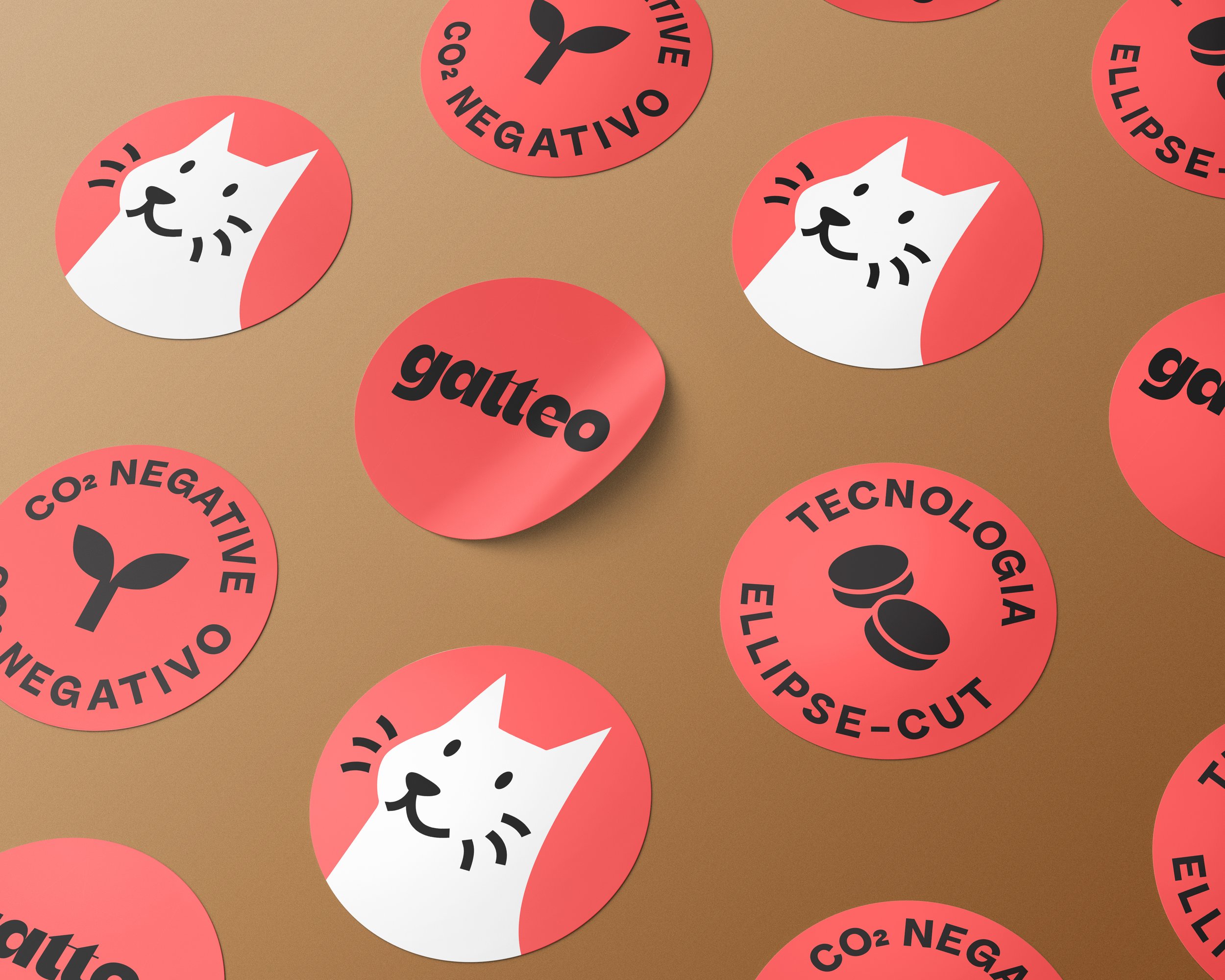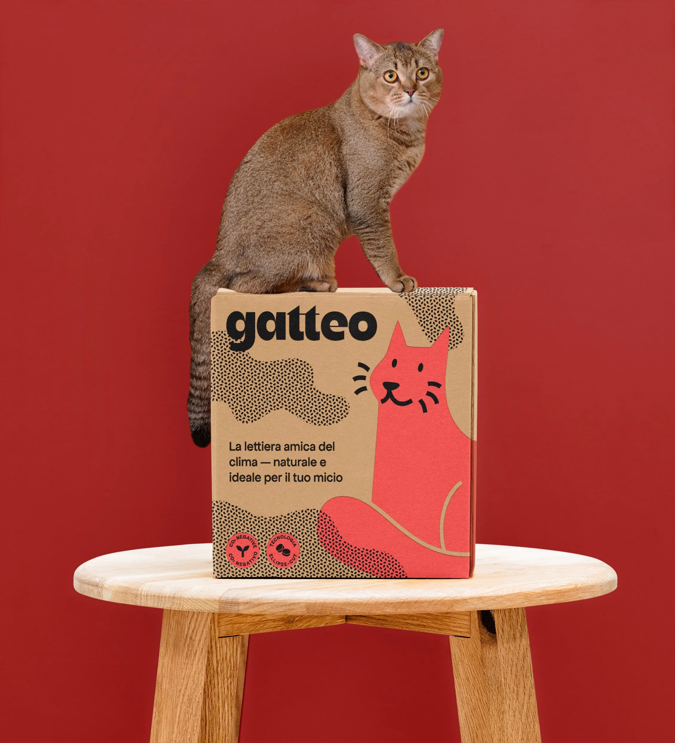 Ambalaža i vizualni identitet za drvene pelete za mačke Gatteo, ekološki proizvod obogaćen zeolitom koji dodatno unapređuje inovativna metoda rezanja peleta u obliku diska.