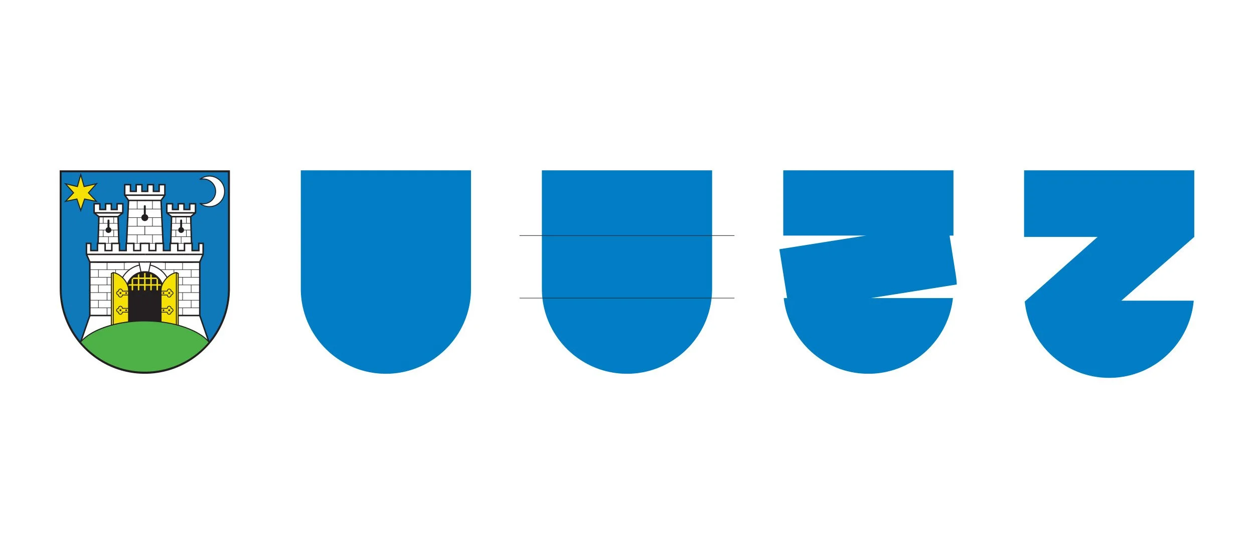 Naš prijedlog znaka je grb reduciran na plavu plohu koja se grafičkom intervencijom (zakretanje srednje trećine) pretvara u masno slovo Z.