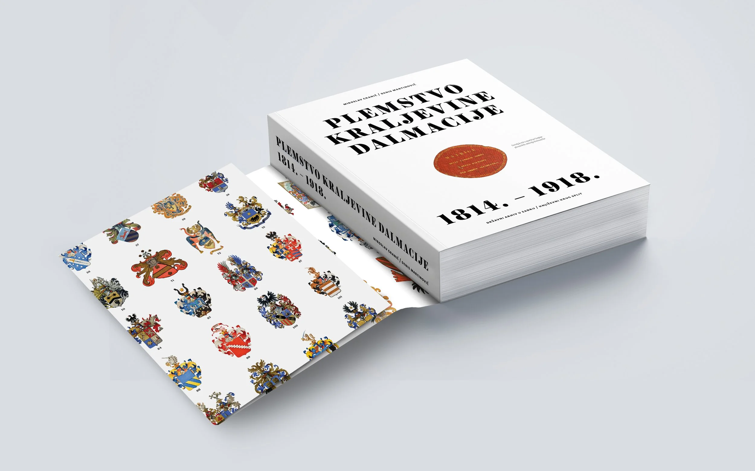 Povratak u prošlost: kapitalno djelo, Plemstvo Kraljevine Dalmacije 1814.-1918. u izdanju Državnog arhiva u Zadru, autora Miroaslava Granića i Denisa Martinovića, oblikovana 2018.